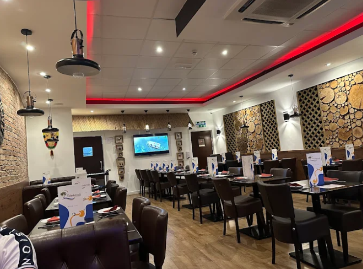 The menu goes beyond the typical UK curry house, spotlighting Malabar Coast flavours through dishes like charcoal-grilled seabass nirachathu, thalassery kozhi curry, malabar fried prawns, and a range of dosas and vibrant vegetarian curries.