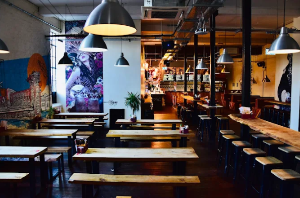 It serves bold East Asian–inspired street food in an energetic, industrial-style setting.